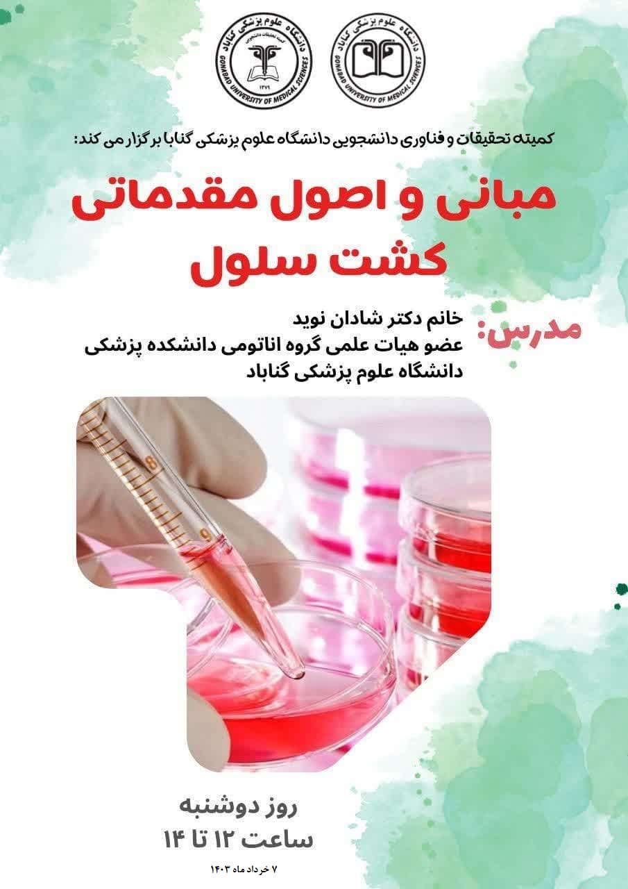✅کارگاه مبانی و اصول مقدماتی کشت سلول
