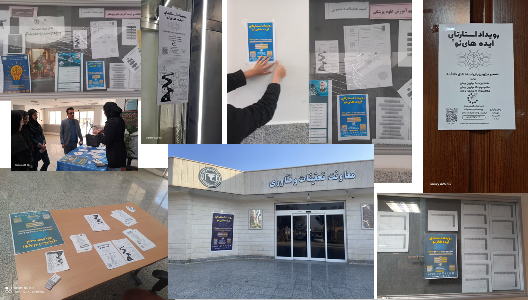 به همت دانشجویان کمیته تحقیقات و فناوری دانشجویی دانشگاه و دانشکده های بهداشت،پرستاری،پزشکی و پیراپزشکی اطلاع رسانی رویداد استارتاپی ایده های نو در سطح دانشگاه و دانشکده ها به خوبی انجام شد.